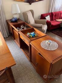 Vendo set composto da tavolo e credenza in legno coordinati, stesso stile e finitura anni ’70. Il tavolo è quadrato con inserto centrale in vetro e struttura interna a griglia, un elemento scenografico e originale. La credenza è capiente e lineare, perfetta per completare l’ambiente in modo coerente. Insieme creano uno spazio caldo e armonico, ideale per chi ama il vintage autentico. 📏 Credenza: 255 x 73,5 x 54 cm (L x H x P) 📏 Tavolo: 128,5 x 128,5 x 72,5 cm (L x P x H) 📍 Buone condizioni con normali segni del tempo 💰 Prezzo set: 260€ trattabili 👉 Disponibili anche le sedie coordinate (vedi altri annunci) Guarda tutti i miei annunci per vedere se ci sono altri mobili o oggetti che ti interessano. Posso farti un prezzo personalizzato. Maggiori foto su richiesta.