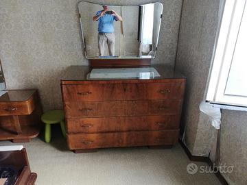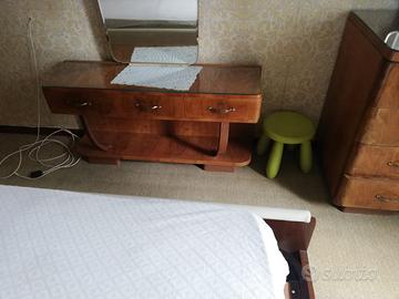 Set in ottime condizioni composto da armadio, cassettiera e toletta. Legno noce fiammato lucido, anni 50-60. Disponibile a mandare altre foto e misure. Ritiro a carico dell’acquirente, primo piano