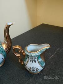 Set vintage Bavaria con decorazioni in oro composto da due pezzi: teiera con coperchio e lattiera. In ottime condizioni. Come da foto.