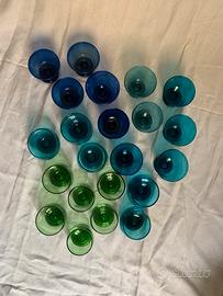 Set vintage di 22 bicchieri in vetro soffiato colorato
