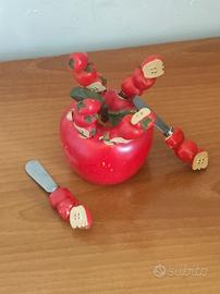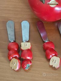 🍅 SET VINTAGE DA MARMELLATA! Coltellini Artigianali con Portacoltellini a Forma di Pomodoro – SOLO 12.99€! 🍅 🍽️ Un vero gioiello di artigianato vintage che unisce funzionalità, originalità e fascino retrò! Questo set da marmellata comprende 6 coltellini artigianali in legno e metallo, custoditi in un originale portacoltellini a forma di pomodoro. Ogni coltello presenta un manico decorato con la forma di 3 pomodorini sovrapposti, un dettaglio unico che lo rende non solo pratico, ma anche un piccolo pezzo d’arte. Il supporto, a forma di pomodoro grande con foglie e gambo, misura 11 cm di altezza e 12 cm di diametro, mentre i coltellini hanno dimensioni di 13 x 2 cm ciascuno. Nel complesso, un set elegante e curioso, perfetto per servire marmellate, burro o creme spalmabili durante colazioni e merende in stile vintage. 🥤 Essendo un pezzo antico, la vernice del legno presenta leggere sbiaditure, ma questo non fa che aumentare il suo fascino retrò. Con una semplice ritinteggiatura, il set potrebbe tornare come nuovo, pur mantenendo il suo carattere autentico e artigianale. Un set così particolare, con portacoltellini a tema e lavorazione artigianale, è difficile da reperire. 💰 Solo 12.99€ per un set completo e raro di 6 coltellini più supporto! Un vero affare rispetto al suo valore, uno sconto succoso. 👌🏻 Perfetto per: ✔️ Collezionisti di oggetti vintage e utensili da cucina d’epoca ✔️ Amanti dell’artigianato e dei dettagli originali ✔️ Chi cerca un pezzo funzionale ma al tempo stesso decorativo ✔️ Regalo unico per chi ama la cucina tradizionale e retrò ⚙️ Dettagli tecnici - Dimensioni coltellini: 13 x 2 cm - Dimensioni supporto: altezza 11 cm, diametro 12 cm - Condizioni: Ottime, vernice un po' sbiadita ma ricolorabile. 👉 Non lasciartelo scappare! Porta a casa questo set unico e originale a soli 12.99€ e dona alla tua cucina un tocco di storia e autenticità. #Vintage #Cucina #Offerta #Coltellini #Pomodoro #Artigianato #Collezione #Occasione #Affare
