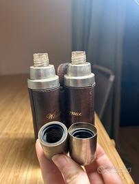Vendo set da viaggio composto da 2 fiaschette per liquori con custodia in pelle.