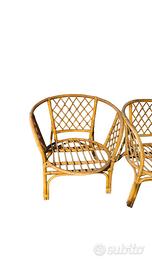 Trasforma il tuo balcone, portico o giardino in un'oasi di puro stile Boho-Chic con questo splendido set vintage in bambù e midollino intrecciato a mano. Un classico del design mediterraneo che unisce calore naturale e leggerezza visiva.