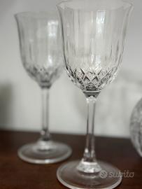 Splendido set da servizio vintage composto da un decanter (caraffa con tappo) e due calici coordinati. La lavorazione a intaglio crea bellissimi