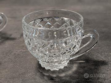 Set vintage originale Walther Kristallglas (Germany) – Zuppiera con 11 tazze in cristallo lavorato