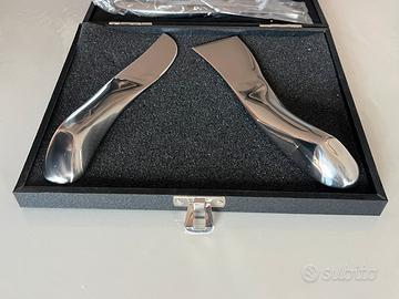 Innanzitutto, il set comprende tre coltelli per formaggi morbidi e duri. La scatola di legno è di grande effetto e rende il set un regalo perfetto per qualche buongustaio o amante del formaggio. In secondo luogo, i coltelli stessi hanno un aspetto gradevole, i loro manici sono ben bilanciati e hanno una forma particolare che li rende adatti alla mano. E quando finalmente preparerete un tagliere di formaggi e li userete, vi innamorerete completamente di questi coltelli che tagliano tutti i tipi di formaggio, dal Brie al Parmigiano, senza sforzo e con eleganza.