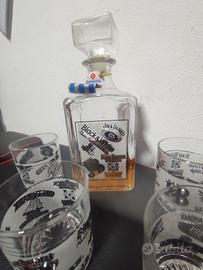 Bottiglia + 4 bicchieri in vetro marcati Jack Daniel in vetro, molto bello da esposizione e da usare, viene venduto sterilizzato e sanificato