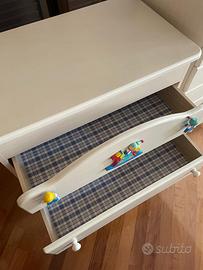 Settimanale e Fasciatoio Pali in ottime condizioni. Settimanale: 54 x 42 cm e 114 di altezza, profondita cassetti circa 37,5 cm, piedini fissi. Fasciatoio: 76,5 x 46 cm e altezza 88,5, profondita cassetti circa 40 cm, piedini a rotelle