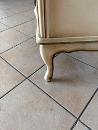 Ha qualche segno sul piano d’appoggio ( si vedono alcune striatura data dal tempo, essendo in legno) Casaetti tutti utilizzabili. Volendo ho anche armadio 2 ante, abbinato. Misure 129x74x45