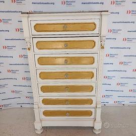 Settimanale Shabby Chic. Struttura in legno laccato bianco con cassetti oro.
