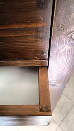 Il mobile è usato e presenta segni del tempo: graffi, macchie e usura visibili soprattutto sui frontali dei cassetti, come da foto.