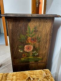 Settimino in legno in stile indonesiano con decorazioni floreali dipinte a mano. Presenta 5 cassetti con maniglie ad anello. Bellissimo pezzo vintage d’arredo. Valuto offerte Ritiro a mano