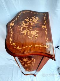 Settimino in stile Luigi XV. Tutto intarsiato con pannelli di scorrimento di fogliame e rametti di fiori. Sette cassetti su gambe cabriolet. Revival relativamente moderno di una metà del 18th secolo, design francese. Impiallacciato di mogano. Piccole parti da restaurare. Misure: altezza cm. 127, largo cm. 52, profondo cm. 38. Spedizione da concordare.