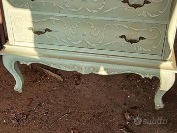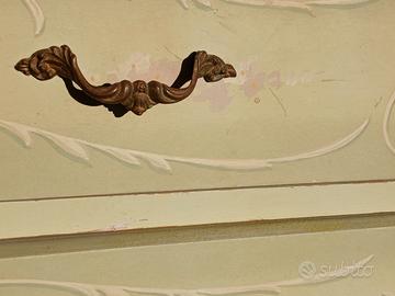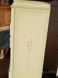 settimino artigianale dipinto a mano con decorazioni floreali stile liberty, sfondo verde acqua chiarissimo. in buono stato. da fare piccoli ritocchi