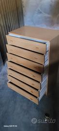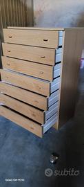 cassettiera settimino in legno chiaro, misure: 74x45 h.112 ,condizioni esterne come la foto