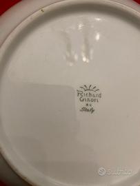 La lavorazione è riconoscibile: porcellana bianca compatta, smalto lucido e il tocco pittorico tipico di Ginori di fine XX secolo . un piatto presenta una scheggiatura sul retro .
