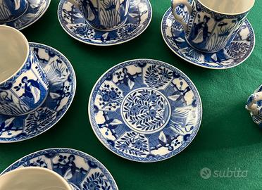 Come da foto vendo servizio da te X 6 persone in porcellana bianco/blu con disegno in stile orientale