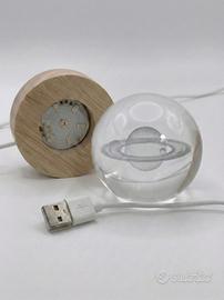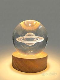 Immergiti in un'atmosfera rilassante e affascinante ma allo stesso tempo accattivante. Sfera di cristallo che racchiude al suo interno un meraviglioso punto luce ottenuto con tecnologia laser. La sfera è elegantemente poggiata su una base su una solida base in legno che aggiunge un tocco di naturalezza. Collegandola all'elettricità, un effetto luce calda e soffusa si diffonde proiettando nel soffitto 6 delicatissimi punti luce, creando un'atmosfera magica, rilassante e romantica, perfetta per la camera da letto, il soggiorno o qualsiasi angolo della casa che desideri rendere speciale. Ideale come complemento d'arredo in stile romantico è anche un regalo unico o originale per appassionati di astronomia, sognatori o per celebrare occasioni speciali.