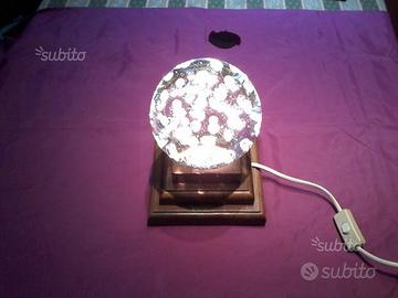 vendo a 40 euro sfera di cristallo luminosa (diametro 15 cm) con basamento in noce con lampada alogena 20w e vetrini colorati intercambiabili ideale per stupire gli amici , stupendo effetto luminoso in tutte le direzioni, pezzo unico realizzato da artigiano