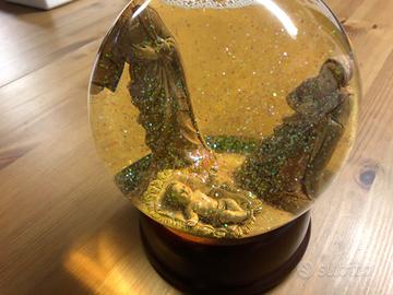 Vendo bellissima sfera natalizia contenente presepe con Maria, Giuseppe e Gesù bambino.