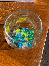 Sfera da usare come decoro o acquario con finti sassolini colorati, ha una minuscola scheggetta sulla parte interna del bordo quasi neanche visibile