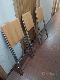 Sgabelli 3 alti legno alluminio pieghevoli modello depositato Fiam S.p.A. Made in Italy. Misure da aperti 50cm x 50cm altezza con schienale 84 cm, da terra alla seduta 62cm Zona Roma Ovest Via Rivarone