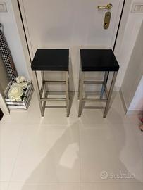 Sgabelli alti in acciaio (struttura) e legno (seduta)