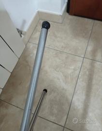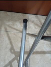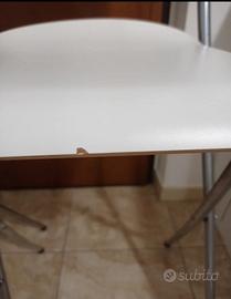 coppia di sgabelli alti, marca Ikea, con seduta e schienale in legno bianco e struttura colore alluminio, presentano segni di usura nella parte inferiore e uno è scheggiato nelle seduta, preferibile ritiro a domicilio , prezzo trattabile