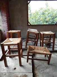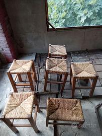 6 sabelli antichi in legno con seduta in paglia...5 sono in perfette condizioni nella foto ne vedete uno piu piccolo quello ha la paglia leggermente rovinata ovviamente sistemabile...Sgabelli effetto vissuti stile rustico