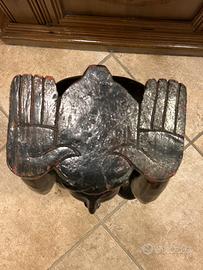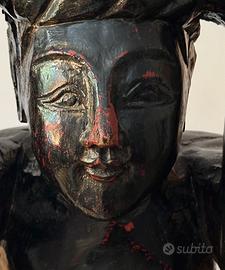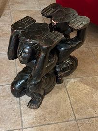 Coppia di sculture antropomòrfe in legno ebanizzato - Epoca: fine ‘800. H cm 51 - L cm 26 - P cm 26 Le due figure inginocchiate - con le mani sul capo pronte a sostenere un vassoio - mostrano tracce di bolo rosso lì dove l'originario pigmento nero è andato a consumarsi. Il bolo rosso veniva anticamente usato come base sulle superfici lignee prima della successiva pittura. Non si tratta solo di figure ornamentali fini a sè stesse, ma possono servire - con l’aggiunta di un vetro - come base di un tavolo da caffè. 🚩 in vendita a 600,00 euro (300€ cadauno)