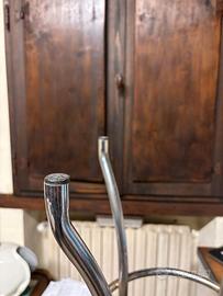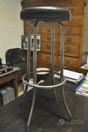 Sgabelli bar (n.4 ) metà/ fine anni 70' con struttura in tubo cromato e seduta imbottita e rivestita in sky ( acquistati all'epoca dal sottoscritto, usati pochissimo ed ancora in ottime condizioni). Molto comodi e stabili .Dimensioni esterne (base tubi) cm. 37x37 e diametro seduta cm.32 altezza cm. 76