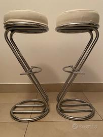 Coppia sgabelli da bar tubolari cromati, modello a Z, stile Mid Century, marchio Segis