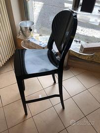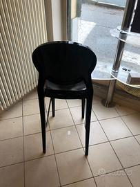 Elegante sgabello con struttura in bicarbonato color nero utilizzabile per arredo interno o esterno.