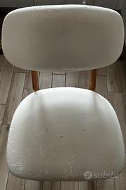 Come visibile dalle foto, il rivestimento in ecopelle bianca è usurato e presenta screpolature, pertanto gli sgabelli necessitano di essere rifoderati. Sono la base perfetta per chi desidera personalizzarli con un nuovo tessuto o colore, adattandoli al proprio arredamento.