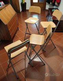 Pratici sgabelli bar/salotto pieghevoli con seduta in legno.