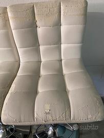 Sgabelli da penisola in ecopelle. Ecopelle rovinata, ma foderabile con dei copri sgabelli.