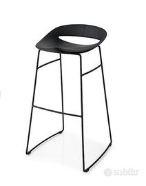 Sgabello COSMOPOLITAN con un sedile a schienale basso e un poggiapiedi cromato colore nero. Struttura in metallo. Sedile in polipropilene. Altezza seduta cm 80. Veneuti in coppia