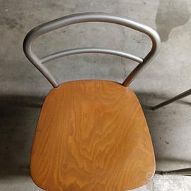 Coppia di sgabelli Calligaris con struttura in ferro colore grigio e seduta in legno