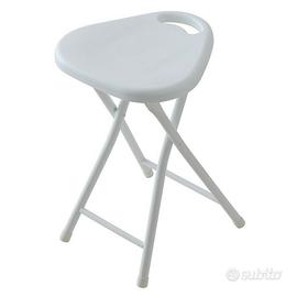 Sgabello pieghevole con seduta in ABS e gambe in acciaio colore bianco,