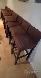 10 sgabelli bar pelle sintetica Vendo 10 sgabelli da bar. Sono in buone condizioni, con una leggera patina sul rivestimento. - Struttura in legno scuro - Seduta comoda e imbottita. Vendita anche separatamente Dimensioni: 41 x 45 x 108 cm (LxLXA) Altezza seduta: 75 cm Altezza schienale: circa 35 cm Materiale gambe: Legno Capacità massima di carico: 110 kg