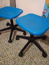 vendo due sgabelli con ruote , regolabili in altezza, seduta in plastica dura, colore azzurro.prezzo euro 30,00 in totale per due sgabelli. vendo anche singolarmente.