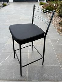 Sgabelli arredo zona pranzo/cucina versatili e moderni gambe colore nero seduta in pelle nera e schienale in acciaio lucido. Come nuovi.