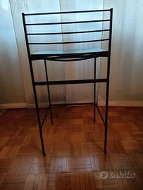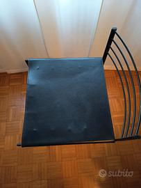 n. 2 sgabelli cucina vintage anni 90 seduta in cuoio nero cm 43x43 altezza seduta 65 cm, altezza schienale 82 cm, struttura ferro verniciato nero.
