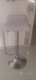 Sgabelli a piantana senza schienale con poggiapiedi, altezza regolabile tramite pistoncino. Come potete vedere in foto c'è una seduta di colore bianco e un pistone saliscendi in più come ricambio. Di tutto il kit è stato utilizzato solamente lo sgabello completo colore rosso mentre gli altri sono tutti pezzi nuovi.