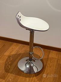 Coppia di sgabelli da cucina a pistone Calligaris. Come nuovi! (unico segno di usura visibile in foto) Colore bianco. Struttura metallo argento. Pesanti e molto stabili! Vengono venduti in coppia.