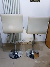Vendo coppia di sgabelli regolabili, con base cromata e seduta a poltroncina in eco pelle. Uno in buone condizioni, l'altro con seduta rovinata. A disposizione per ulteriori informazioni. Non spedisco