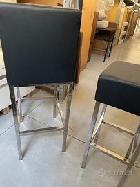 1 Sgabello H.80cm alla seduta senza schienale + 1 Sgabello H.80cm alla seduta con schienale, struttura in acciaio cromato, sedile in ecopelle nera, prodotti dalla ditta Duevi, nuovi da esposizione, disponibili presso il nostro showroom a Montebelluna Treviso (il prezzo si riferisce ad entrambi i prodotti)