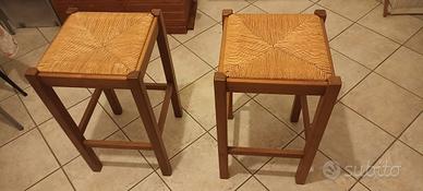 Coppia di sgabelli in noce chiaro e seduta in paglia. Seduta 37 x 37 altezza 65 cm, erano di una cucina su misura. Usati poco o niente, non spedisco.