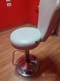 Vendo 6 sgabelli in buone condizioni. Rivestiti in pelle e con base in metallo. Base poggiapiedi. In parte girevoli. Sul retro c'è un piccolo logo che può essere rivestito.