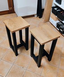 Coppia di sgabelli industrial design in legno massello di Rovere, realizzazione artigianale.